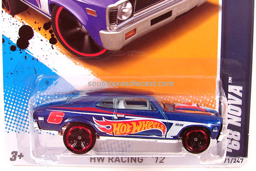 Mtflk. Blue, w/White, Red, & Yellow HW logo on sides & hood, White stripes on sides, hood, & trunk, '6' on sides & hood, Chrome Malaysia Base, w/ChrRed/BlackMC5's