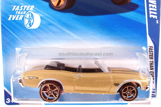 Mtflk. Gold, w/Black & Silver stripes on hood & trunk, 'SS 396' & HW logo on sides, Chrome Malaysia Base, w/FTE's