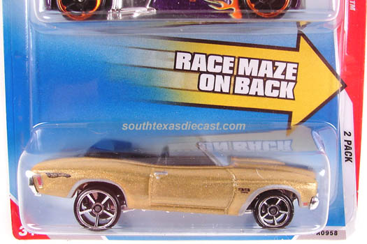 Mtflk. Gold, w/Black & Silver stripes on hood & trunk, 'SS 396' & HW logo on sides, Chrome Malaysia Base, w/OH5SP's