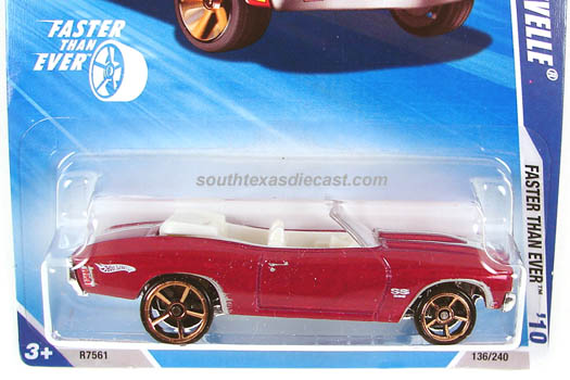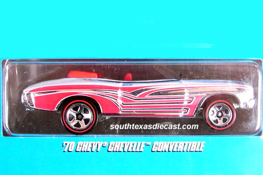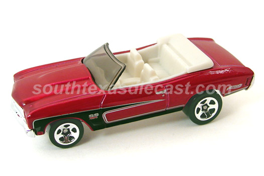 Mtflk. Red, w/White & Silver stripes on hood & trunk, 'SS 396' & HW logo on sides, Chrome Malaysia Base, w/FTE's