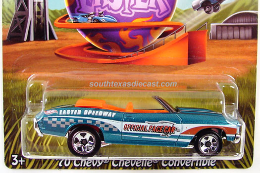 Mtflk. Teal, w/White & Orange stripes on sides, hood, & trunk, 'Easter Speedway' & 'Official Pace Car' on sides , Chrome Malaysia Base, w/5SP's