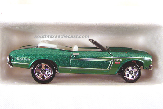 Mtflk. Green, w/White & Gold stripes on hood & trunk, 'SS 396' & HW logo on sides, Chrome Malaysia Base, w/FTE's