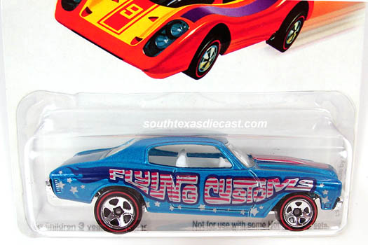 Mtflk. Blue, w/Dk. Blue, Red, & Silver tampos w/Stripes on hood, 'Flying Customs' on sides, White Interior, Chrome Malaysia Base, w/RL5SP's