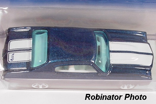 Mtflk. Blue, w/White stripes on hood & trunk, White outline on hood stripes, White interior, Unpainted Malaysia Base, w/5SP's