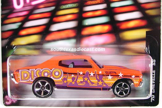 Orange, w/White, Yellow, & Purple stripes on sides, hood, & roof, Purple stripes on trunk, 'Disco' on sides & roof, Grey Interior, Chrome Malaysia Base, w/MC5's