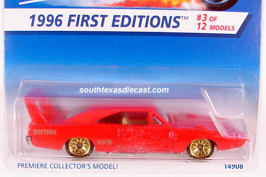 Red, w/Gold 'Daytona' on rear quarter panel, Gold HW logo on side, Tan Interior, Chrome Malaysia Base, w/SB's