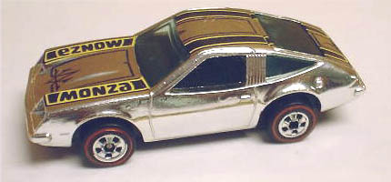 1976 Super Chromes | Chrome, w/Black & Yellow tampo on hood & top w/'Monza' twice, Blue interior, Blue Tint Window, Black Hong Kong Base, w/RL's | $40.00 | $60.00 |