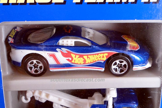 1997 Race Team II 5-Pk | Mtflk. Blue, w/Red, Yellow, & White tampos w/HW logo & '1' on sides, White interior, White Malaysia Base, w/5SP's | $2.00 | ||