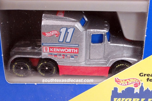 Mtflk. Silver, w/Red, White, & Blue tampos w/'11', 'Kenworth', Kenworth logo, & racing deco on sides, 'Kenworth' on roof, Kenworth logo on hood, Red Malaysia Base, w/BlackGY7SP's | $1.00 | ||