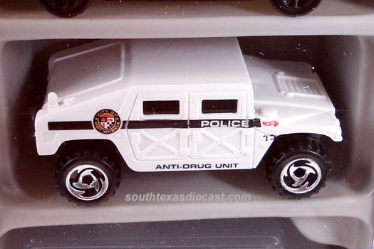 1997 Police Force 5-Pk | White, w/Black, Gold, & Red tampos, 'Police' & 'Infrared Tracking Unit' on sides, Black interior, Black Malaysia Base | $1.00 | ||