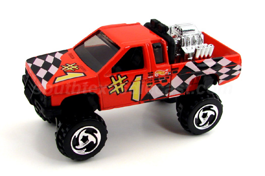 Red, w/Yellow, Black, & Grey tampos w/'Dodge', '4', & racing deco tampos on sides, Dodge Ram logo on hood, '4' on roof, Red interior, Red Malaysia Base, w/BlackGY7SP's | $1.00 | ||