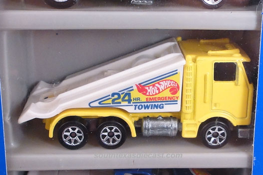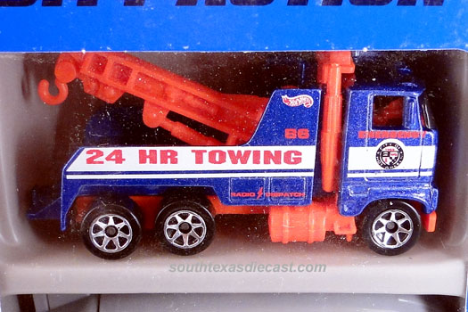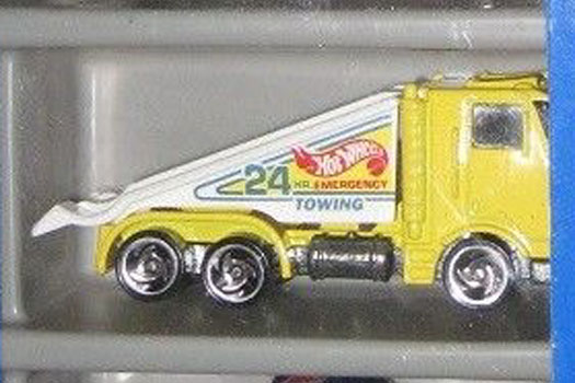 Yellow, w/White ramp, Yellow, Red, & Blue tampos, HW logo & '24hr Towing' on sides, Unpainted Malaysia Base, w/7SP's | $0.50 | ||