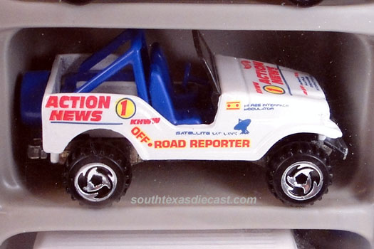 1997 Action News Team 5-Pk | Pearl White, w/Yellow, Red, & Blue tampos, 'Action News', 'KHWW', & '1' on sides & hood, 'Off-Road Reporter' on sides, Blue interior, Unpainted Malaysia Base, w/ORSB's | $1.00 | ||