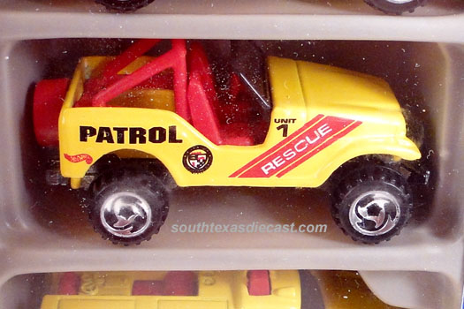 1997 Rescue Squad 5-Pk | Yellow, w/Red stripes, 'Rescue', 'Patrol', & 'Unit 1' on sides, Red interior, Unpainted Malaysia Base, w/ORSB's | $1.00 | ||