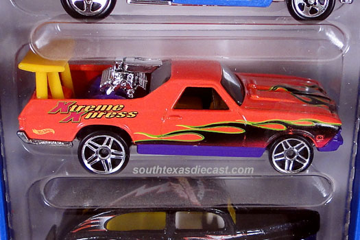 Orange, w/Purple, Black, Green, & Yellow flames on sides & hood, 'Xtreme Xpress' on sides, Yellow interior, Unpainted Malaysia Base, w/PR5's | $1.00 | ||