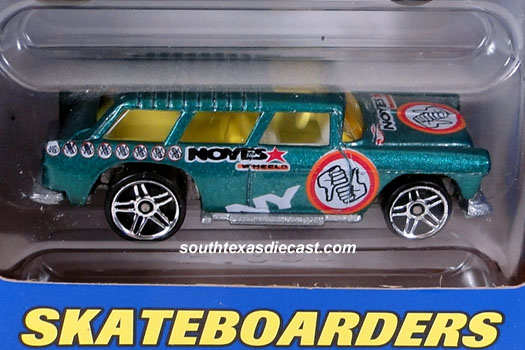 2001 Skate Boarders 5-Pk | Mtflk. Green, w/Orange, Red, White, & Black tampos, 'Noyes Wheels' on sides & hood, White interior, Mtflk. Silver China Base, w/PR5's | $1.00 | ||