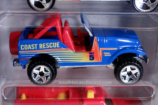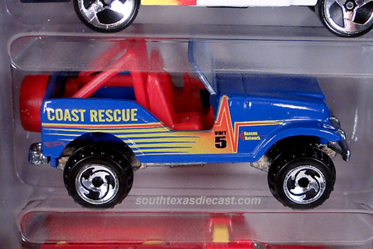 2001 Rescue Rods 5-Pk | Blue, w/Yellow, Orange, & Red tampos on sides w/'Coast Rescue' & '5' on sides, Red interior, Unpainted Thailand Base, w/OR5SP's | $2.00 | ||