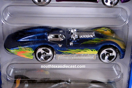 2001 Hot Rods 5-Pk | Red, w/Yellow, Silver, & Purple tampos on sides, Chrome interior, Unpainted Thailand Base, w/5SP's | $1.00 | ||