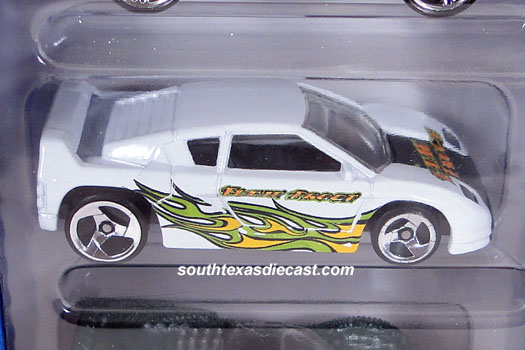 2001 Cyborg City 5-Pk | White, w/Yellow, Green, & Black flames on sides, 'Flame Proof' on sides & hood, Black interior, Black China Base, w/3SP's | $1.00 | ||