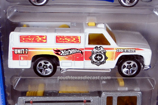 2002 Extreme City 5-Pk | Blue, w/White, Black, Red, & Silver tampos, 'Chemical Response Unit' & '1' on side, White interior, Unpainted Malaysia Base, w/OR5SP's | $1.00 | ||