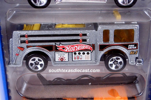 2002 Heat Fleet 5-Pk | White, w/Red, Yellow, & Black tampos, fire dept shield, 'Unit 7', 'Code H110201', & HW logo on sides, Clear Yellow interior, Chrome Thailand Base, w/5SP's | $1.00 | ||