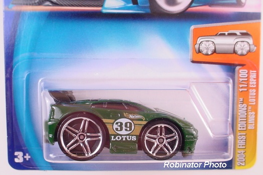 2004 First Editions #11 | Dk. Green, w/Gold & White tampos, '39' & stripes on sides & hood, 'Lotus' & HW logo on sides, Black interior, Black Malaysia Base, w/PR5's | $3.00 | $6.00 | |