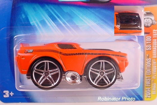 2004 First Editions #13 | Mtflk. Orange, w/Red, Yellow, & Black flames on top, HW logo on wing, Grey interior, Chrome Malaysia Base, w/BLING's | $0.50 | $1.00 | |