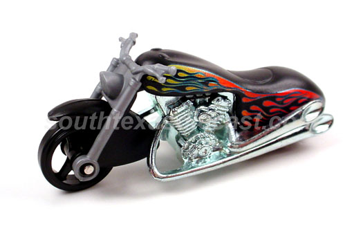 Flat Black, w/Flame tampos on sides , Unpainted Malaysia Base, w/Scooter Wheel's