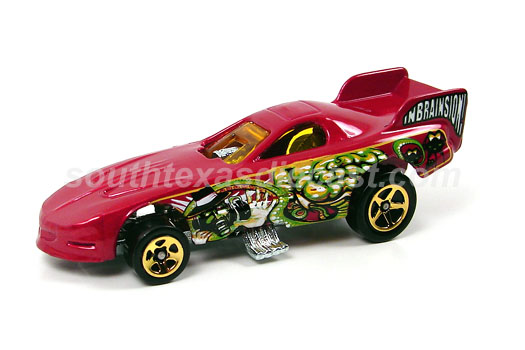 Firebird Funny Car | 2006 Sci-Fi Hiway 5-Pk | Mtflk. Red, w/Green, Yellow, White, & Black w/'Inbrainsion!' & brain on sides, Unpainted interior, Unpainted China Base, w/Goldp5SP's | $1.00 | ||