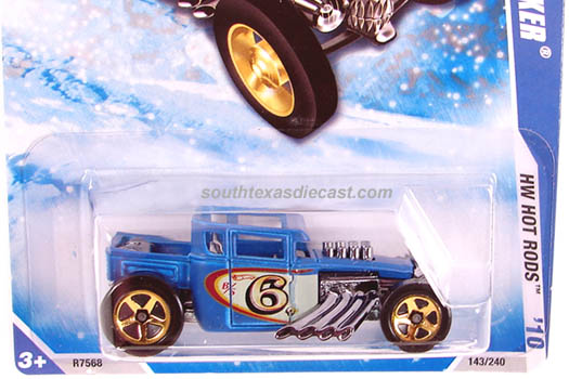 2010 HW Hot Rods #05 | Satin Blue, w/White, Beige, & Dk. Red tampos, '6' on sides, Unpainted Malaysia Base, w/Gold5SP's | $0.00 | $0.00 |
