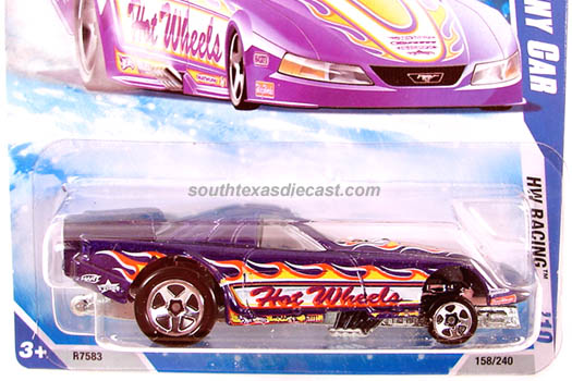 2010 HW Racing #10 | Mtflk. Purple, w/White, Yellow, Purple, & Red tampos, flames on sides & nose, 'Hot Wheels' on sides, Unpainted Malaysia Base, w/5SP's | $0.00 | $0.00 | |