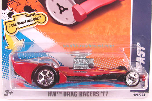 2011 HW Drag Racers #06 | Mtflk. Dk. Orange, w/Yellow, White, Black, & Orange tampos, race deco & stripes across top, Clear windows, Black Malaysia Base, w/5SP/SK5's | $0.00 | $0.00 |