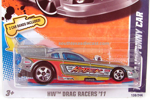 2011 HW Drag Racers #10 | Mtflk. Silver, w/Orange, Yellow, White, & Black tampos on sides & hood, 'HLADEK' & race deco on sides, Grey Malaysia Base, w/5SP's | $0.00 | $0.00 |