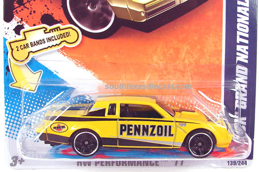 2011 HW Performance #09 | Pearl Yellow, w/Black & Silver tampos, stripes on sides & across top, 'Pennzoil' on sides & hood, Black Malaysia Base, w/Chrome/BlackPR5's | $0.00 | $0.00 |
