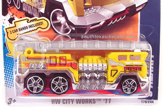 2011 HW City Works #08 | Yellow, w/Red, Silver, Black, & White tampos, 'Fire' on sides & front, Red Malaysia Base, w/PR5's | $0.00 | $0.00 |