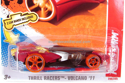 2011 Thrill Racers - Volcano #2 | Mtflk. Red, w/Yellow, Orange, & Black flames across top, '2' on front & rear fender, Satin Black Malaysia Base, w/Chrome/OrangeOH5SP's | $0.00 | $0.00 |