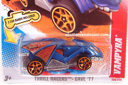 2011 Thrill Racers - Cave #2 | Blue, w/Red, Gold, & Black tampos on sides, Unpainted Malaysia Base, w/ChrOrangeY5's | $0.00 | $0.00 |