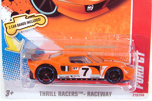 2011 Thrill Racers - Raceway #3 | Orange, w/Lt. Blue, White, & Black stripes & '7' on sides & hood, race deco on sides, Black Malaysia Base, w/ChrBlue/BlackOH5SP's | $0.00 | $0.00 |