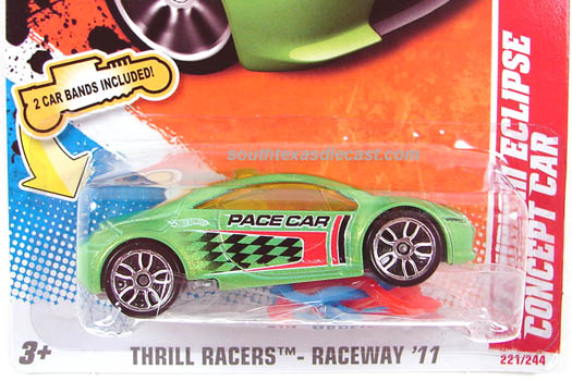 2011 Thrill Racers - Raceway #5 | Mtflk. Green, w/Red, Black, & White tampos, 'Pace Car' on sides & hood, Grey Malaysia Base, w/J5's | $0.00 | $0.00 |