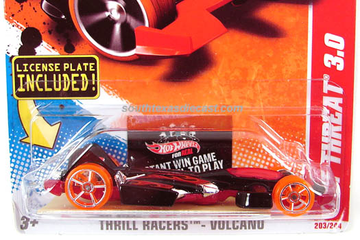2011 Thrill Racers - Volcano #5 | Black, w/Orange & Red tampos, stripes, flames, & 'Volcano Circuit' across top, Mtflk. Red Malaysia Base, w/Orange/ChromeOH5SP's | $0.00 | $0.00 | |