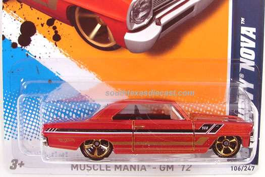 2012 Muscle Mania - Mopar #05 | Red, w/White & Orange stripes on sides & hood, 'Dodge' on sides, Black Malaysia Base, w/WhitePR5's | $0.00 | $0.00 |