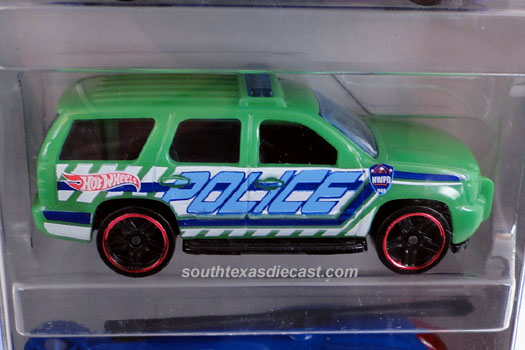2015 Police Pursuit 5-Pack | Green w/Blue & White stripes, Lt. Blue 'Police' & Red/White HW logo on sides, Black Thailand base, w/ChrRed/BlackPR5's | $0.00 | ||