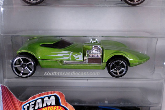 2015 Thrill Racers 5-Pack | Mtflk. Lime Green w/Black, Purple, & White flames, Black & Yellow stripes, 'Stunt Team' on sides, Black Thailand base, w/ChrPurple/BlackOH5SP's | $0.00 | ||