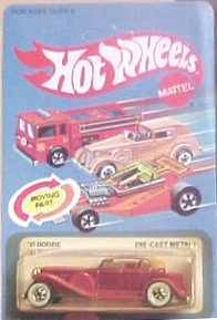 Mtflk. Red, w/White roof, Silver trim on sides, Red & White HW logo on rear, Black interior, Unpainted Malaysia Base, w/5SP's