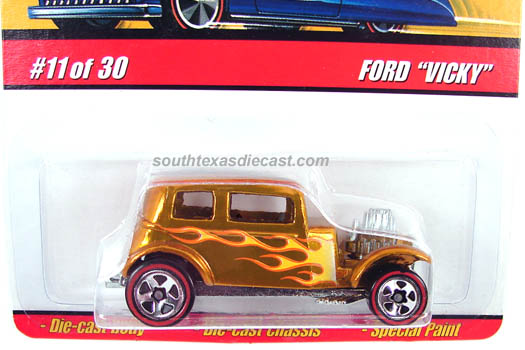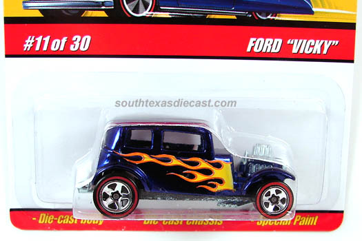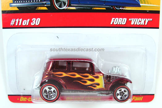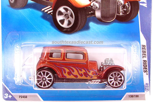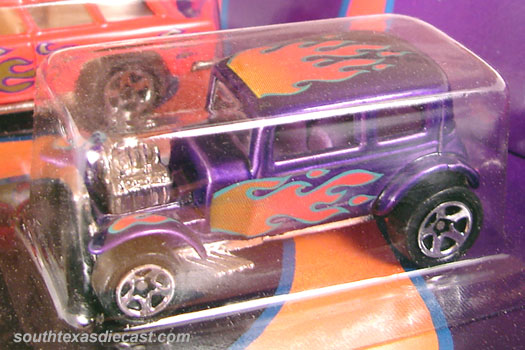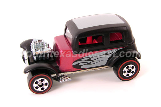 Flat Black, w/Dk. Red & Yellow flames on sides, Red, Orange, & Yellow flames on roof, HW logo on roof, Red interior, Unpainted Malaysia Base, w/PR5's