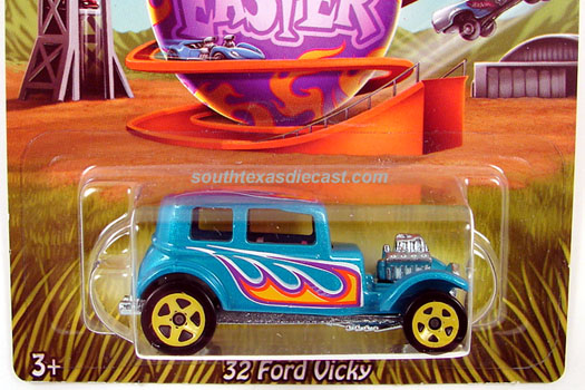 Mtflk. Aqua, w/Yellow, Orange, Purple, & White flames on sides & roof, 'Easter 2014' on roof, HW logo on rear , Unpainted Malaysia Base, w/Yellow5SP's