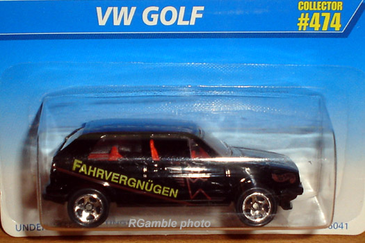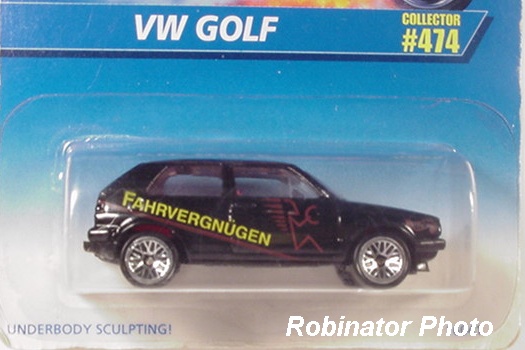 1996 Hot Wheels #474 | Black, w/Red & Yellow tampos w/'Fahrvergnugen' & HW logo on sides, Red interior, Black China Base, w/5SP's | $1.50 | $3.00 |