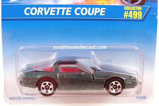 Corvette Coupe | 1996 Hot Wheels #499 | Mtflk. Dk. Green, w/Red HW logo on rear window, Silver tampo on front, Red tail lights, Red interior, Black China Base, w/WSP's | $2.00 | $4.00 |