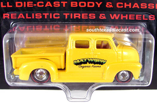 Yellow, w/'Matthew Organic Farms' tampo on sides , Tan Interior, Unpainted Malaysia Base, w/RLRR's