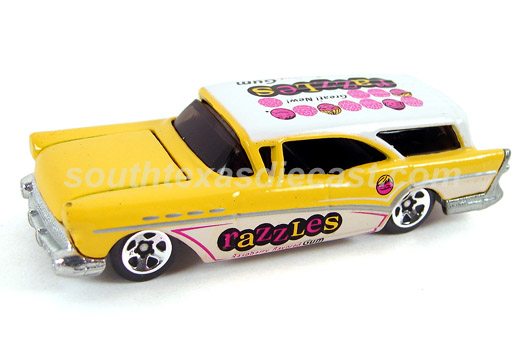White & Yellow, w/Purple, Magenta, Olive, & Black tampos, 'Razzles Gum' on sides, rear, & roof, Black Interior, Unpainted Malaysia Base, w/5SP's
